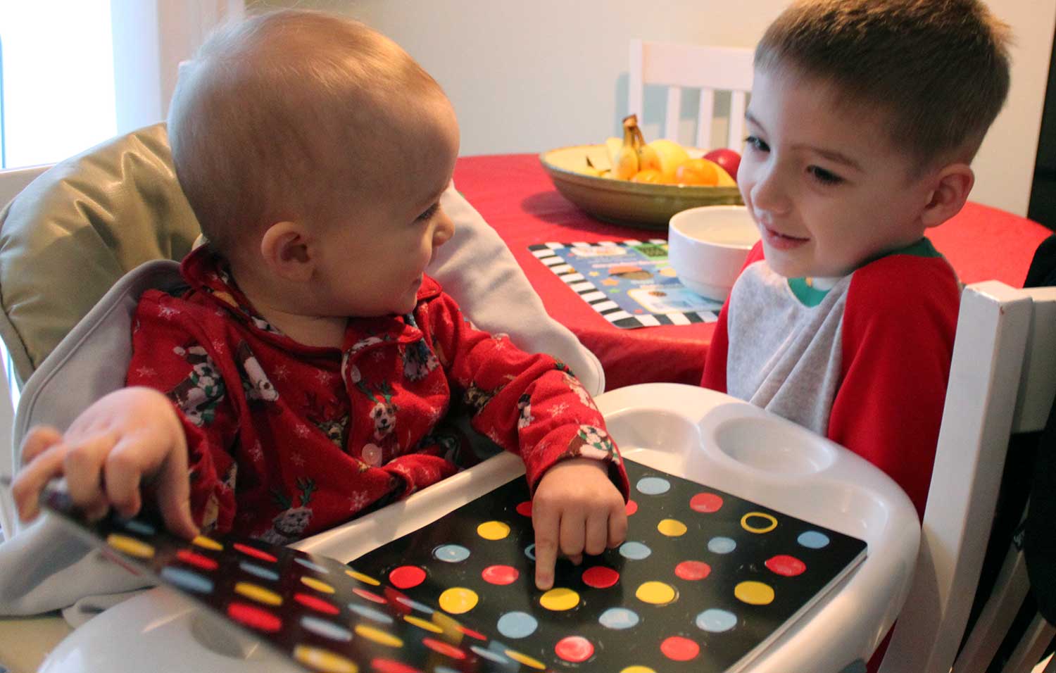Press Here on January 12, 2013 Get link Facebook X Pinterest Email Other Apps Dots, Dots, Dots...Luke's new favorite book is Press Here. He brings it everywhere. Thanks Uncle Bill! This was one of the big Christmas hits!