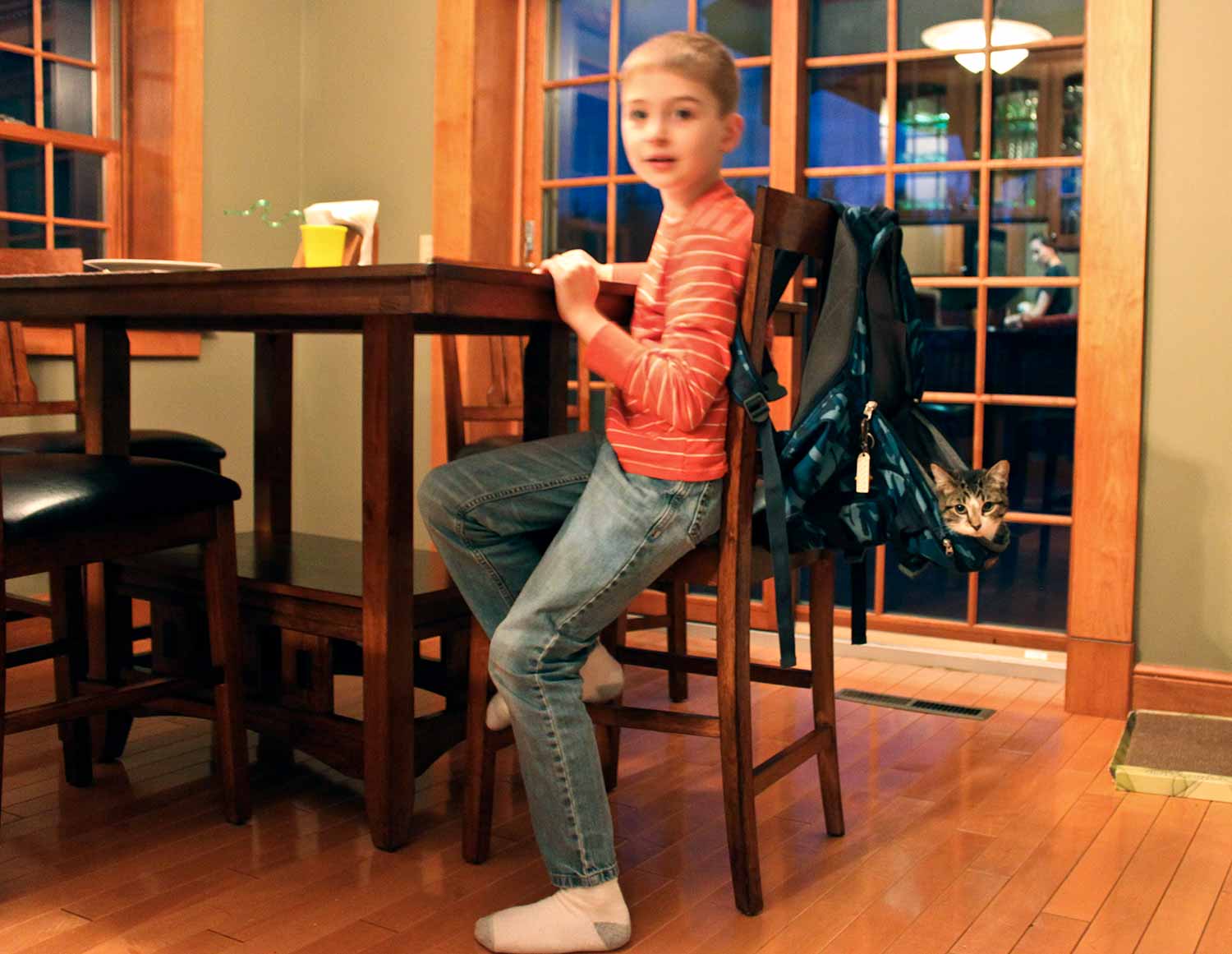 Bus Stop Colors on November 19, 2015 Get link Facebook X Pinterest Email Other Apps Jack at this bus stop this morning. Look at the below photo carefully; its not just a (bad) photo of Jack doing his homework last night but a shot of Catness getting cozy in his backpack.
