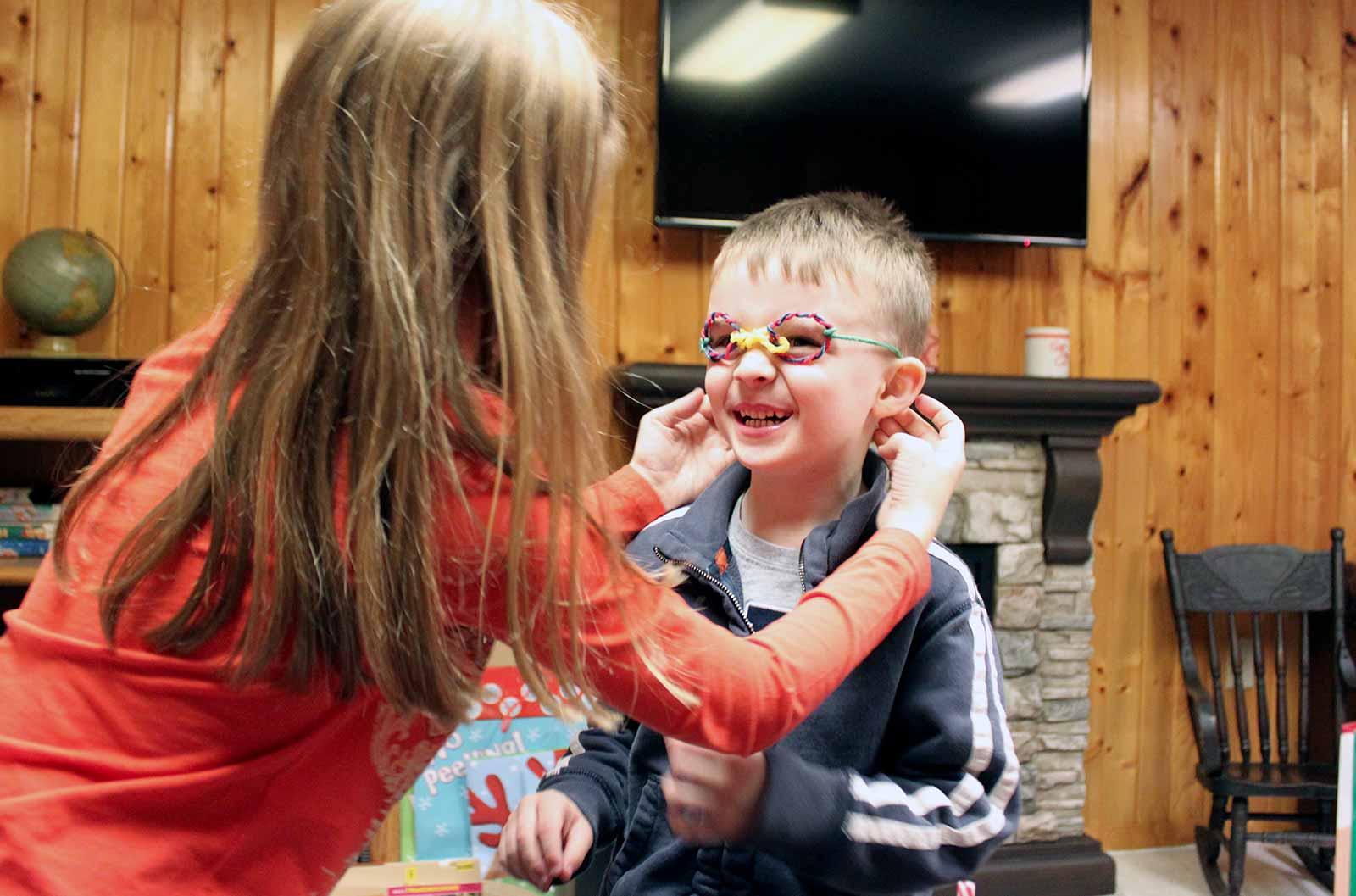 Thanksgiving 2015 was a lot of fun. We visited Grandma and Grandpa in Columbus for a few days. It was one event after another. First we visited with Mary's friend Kelly and her kids. Above: Alexis seemed to be absolutely shocked that I was taking pictures. Below: She puts some homemade glasses on Luke.