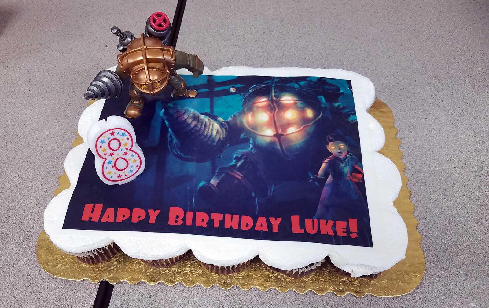 The birthday cake was a decorated in the Bioshock theme, his favorite game of late. He's currently on Bioshock Infinite, the third and final edition.