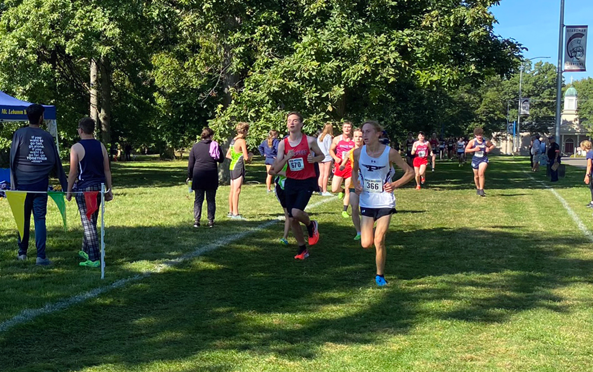 Barberton Tri Meet! This was one of those instances when the boys were at different places. For Jack, it was a three school tri meet. He battled this 38-year old bearded wonder to the finish line and edged him out in the end!