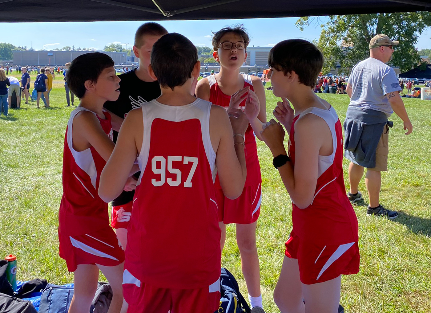 The middle school team also ran at Boardman. Below, Luke vigorously argues that waffles are better than pancakes.